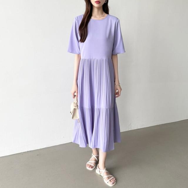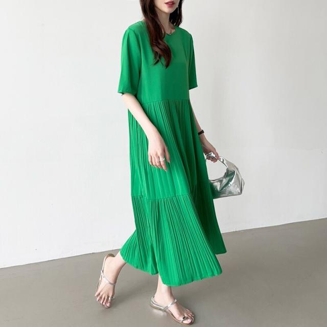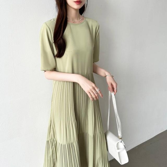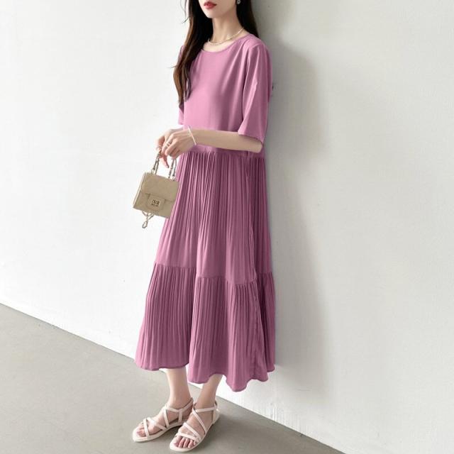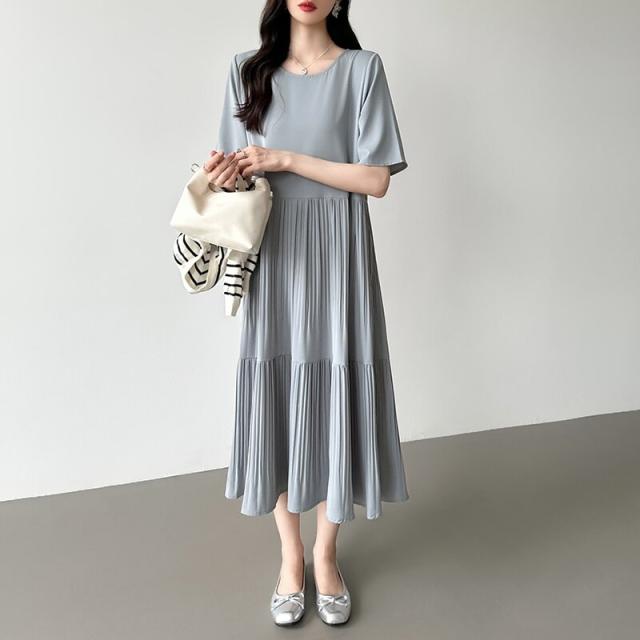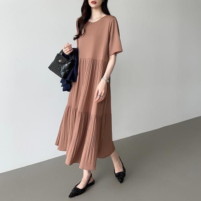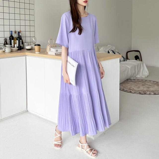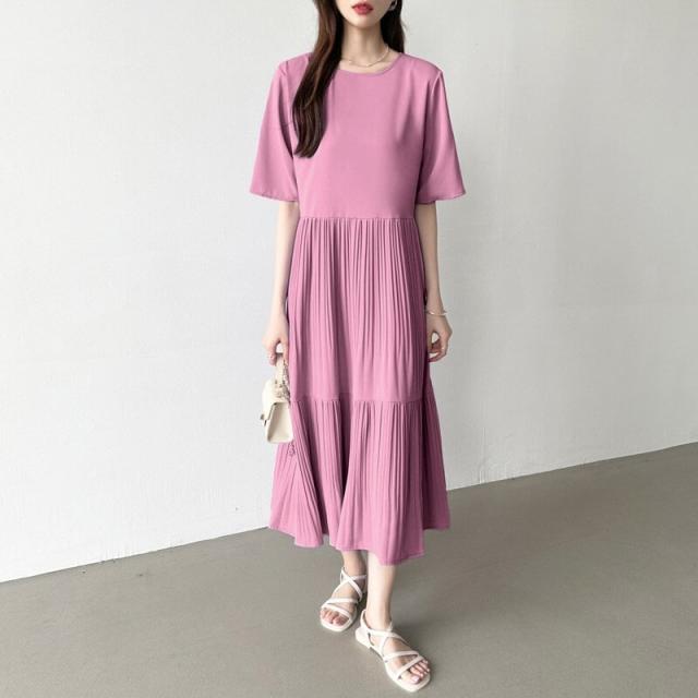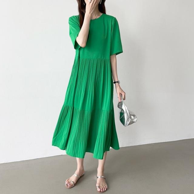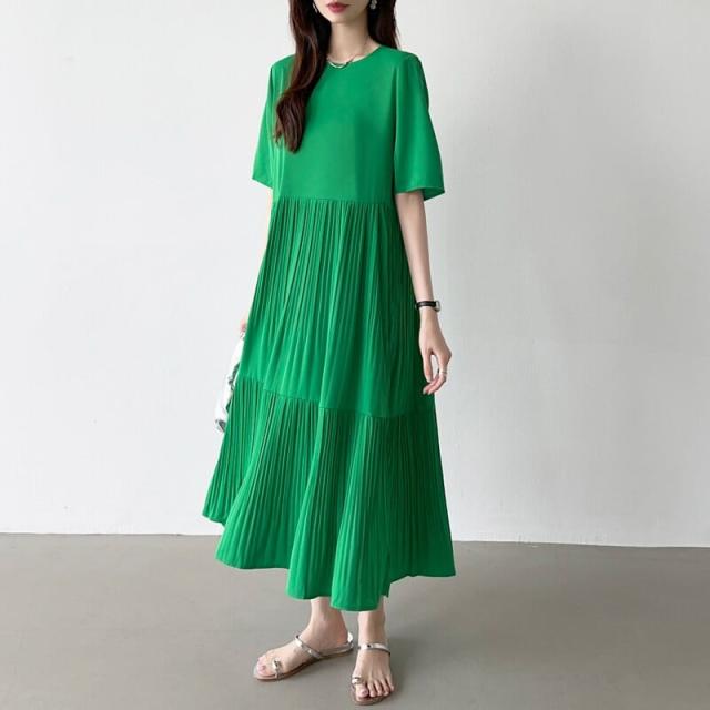 COCOMOMO(COCOMOMO)/フレアワンピース ロング丈 半袖 ギャザーワンピース 夏 レディース クルーネック ゆったり