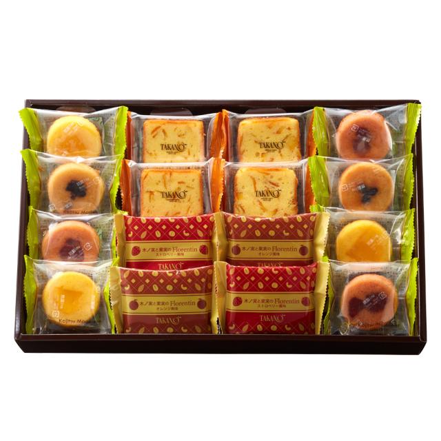 | 内容量 | 果実マドレーヌ(ブルーベリー×2、ストロベリー、マンゴー×各3)、オレンジケイクカット×4、木ノ実と果実のFlorentin(ストロベリー風味、オレンジ風味×各2) |