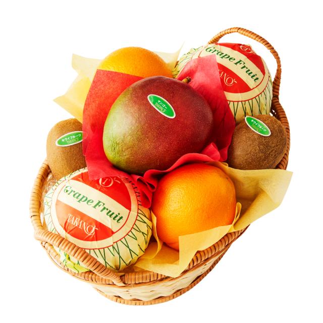 | 内容量 | マンゴー(ブラジル、ペルーまたはオーストラリア産)×1、キウイフルーツまたはサンゴールドキウイフルーツ(愛媛県、和歌山県、山梨県、福岡県またはニュージーランド産)、グレープフルーツ(アメリカ、メキシコまたはオーストラリア産)、オレンジ(アメリカまたはオーストラリア産)×各2(篭入) |