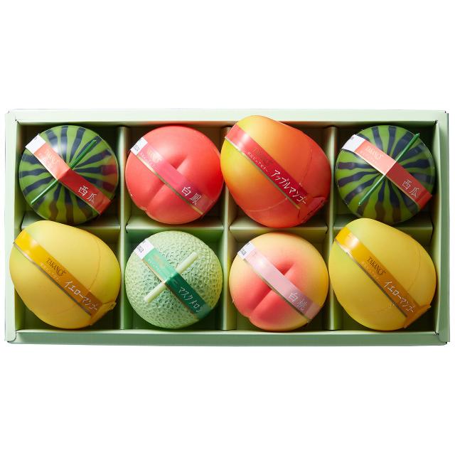 | フルーツの風味を生かした専門店ならではのゼリーです。フルーツのピューレや果汁で仕立てたゼリーを可愛らしい果実型のカップに詰め込みました。季節限定ギフトセットとして、「西瓜」を加えて、更に味のバラエティーが広がりました。 |