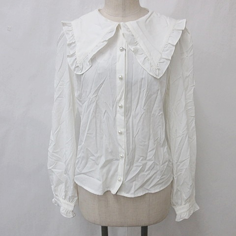 【中古】未使用品 アンクルージュ Ank Rouge ブラウス シャツ 長袖 ビックカラー フリル パールボタン 白 ホワイト M