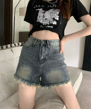 裾フリンジデニムショーパン 美脚脚長ジーパン おしゃれ アメカジホットパンツ細見え美尻ジーンズ レトロ短パン カジュアルパンツ夏 風デニムパンツ カットオフ デニム