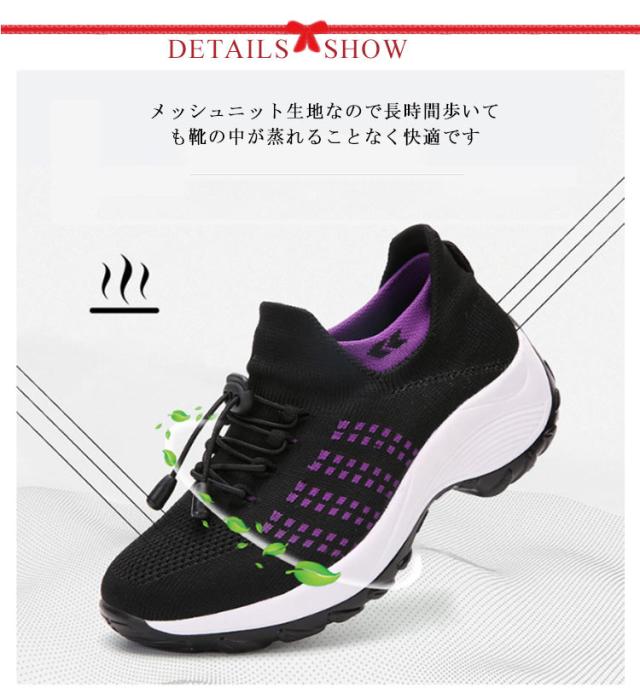 | 結ばない靴ひもスリッポンなので脱ぎ履きしやすいです。 履き口も柔らかく、くるぶし辺りのフィット感が良い。 軽くて足に負担がかからない、長時間のウォーキングや立ち仕事による不快感を軽減し、ストレスフリーを実現します メッシュニット生地なので長時間歩いても靴の中が蒸れることなく快適です 通勤、通学、散歩などの普段使いから、仕事、ウォーキング、プレゼントにも勧めます。 | |