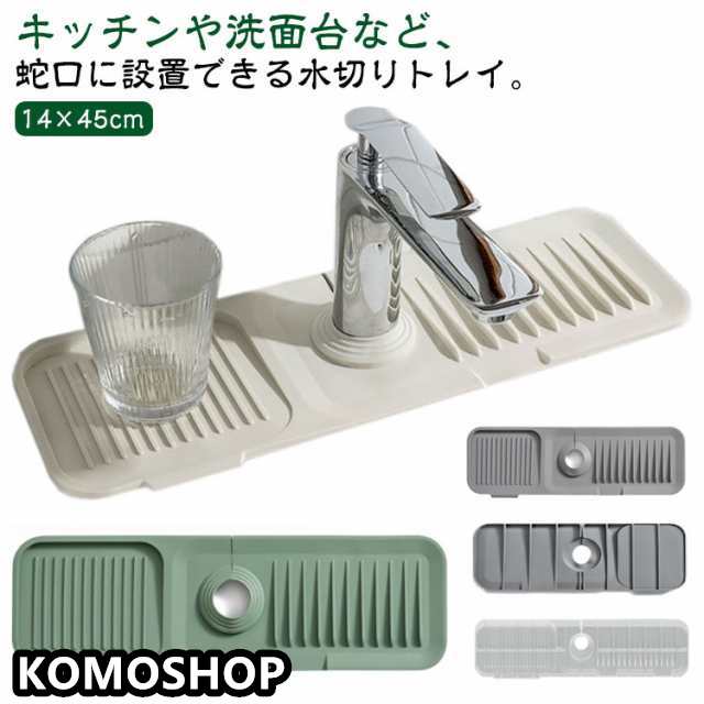 キッチンマット 蛇口マット 洗面台 シリコン 石鹸置き 水切りマット 蛇口水切りマット 滑り止め 傾斜5° 水栓マット スポンジ置き 便利グッズ 水切りトレー 蛇口に取り付け グリーン ダークグレー ライトグレー 蛇口乾燥