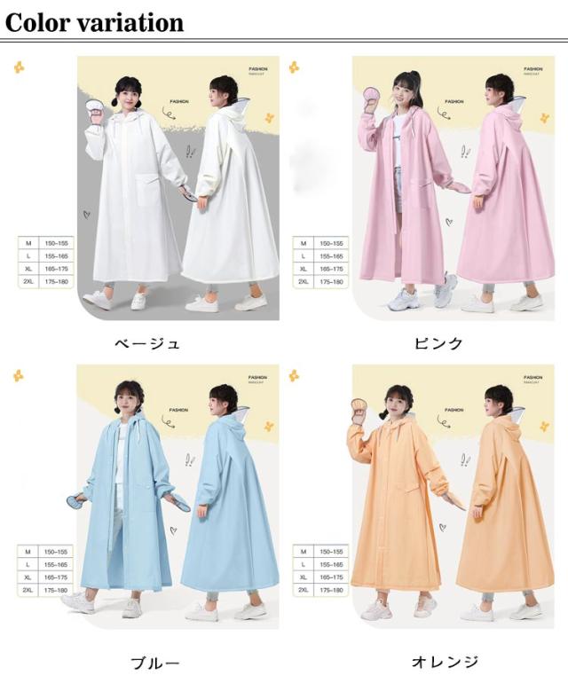 | レインコート リュック対応 透明窓付き 軽量で耐久性の高いEVA素材を使用した、リュック対応のロング丈レインコートです。 さっと羽織れて便利なフルジッパー仕様で、前立てのスナップボタンを閉じることで雨の吹込みによる浸水を軽減します。 フード部分は紐が入っており外れにくく、また透明窓付きなので前が見やすくなっています。 背中のボタンを外すとタックが広がり、ランドセルやリュックの上から羽織れるゆとり設計です。 さまざまなシーンで大活躍。通勤・通学、スポーツ観戦、野外ライブ、お子様の送り迎え、さらには釣り、登山、キャンプのアウトドアや除雪などの作業にも最適! | |