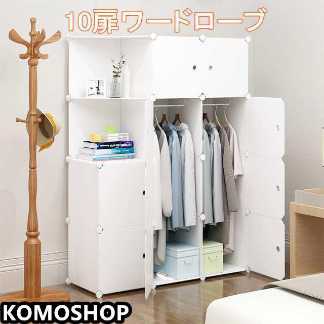 組み立て式 ワードローブ 収納ワードローブ 折り畳み式 クローゼット おしゃれ 白 10扉 DIY 収納家具 衣類収納 鉄筋の骨組 収納棚 天然樹