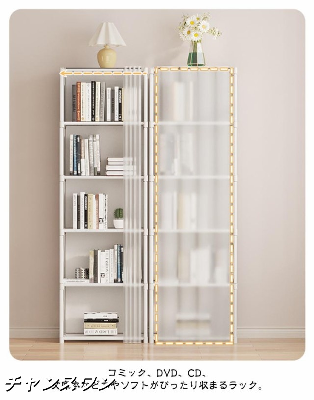 | 【6段・2連】【大容量収納】【本棚】【扉付き】 コミック、DVD、CD、文庫本など本やソフトがぴったり収まるラック。 本棚や飾り棚、小物の整理棚など、様々な使い方ができるシンプルなラック。 大量収納なのに、探しやすく、取り出ししやすい構造です。 シンプルな形が部屋に優しい雰囲気をもたらしてくれ、お宅や職場など、あらゆるシーンで末永く長くご愛用いただけるアイテムです。 生活用品、おもちゃ、雑誌、お子さん用の絵本などを一箇所に集め、スペースをとらずに収納できるので、一人暮らしやワンルームの部屋に住んでいる方にもお勧めです。 防水で汚れにくく、水に濡れてもさっと拭き取ることができ、お手入れは超楽になります。たっぷりな収納スペースをご利用頂けます。 | |