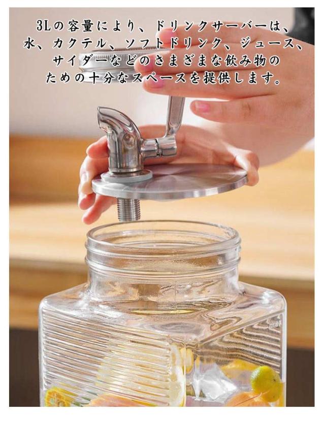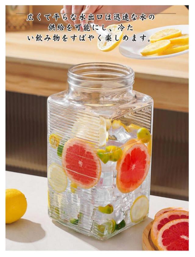 冷水筒 蛇口付き ウォータージャグ 3L 透明 冷蔵庫 麦茶ポットドリンクサーバー ポット 飲料ボトル貯蔵タンク 冷水ポット ピッチャー 方