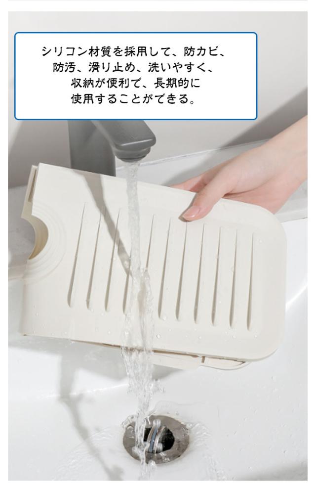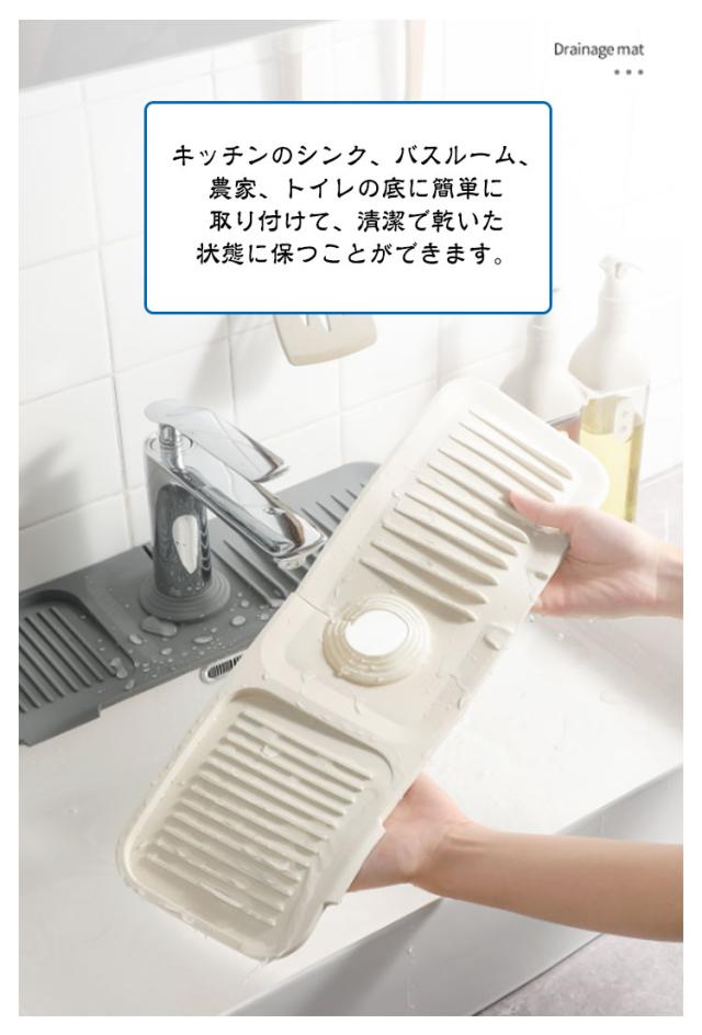 キッチンマット 蛇口マット 洗面台 シリコン 石鹸置き 水切りマット 蛇口水切りマット 滑り止め 傾斜5° 水栓マット スポンジ置き 便利グッズ 水切りトレー 蛇口に取り付け グリーン ダークグレー ライトグレー 蛇口乾燥