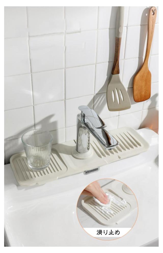 | キッチンや洗面台など、蛇口に設置できる水切りトレイ。 前方向に5°の傾斜で水はけ良好。 蛇口の直径に合わせ、カットして調整可能。 シリコン材質を採用して、防カビ、防汚、滑り止め、洗いやすく、収納が便利で、長期的に使用することができる。 キッチンのシンク、バスルーム、農家、トイレの底に簡単に取り付けて、清潔で乾いた状態に保つことができます。 | |