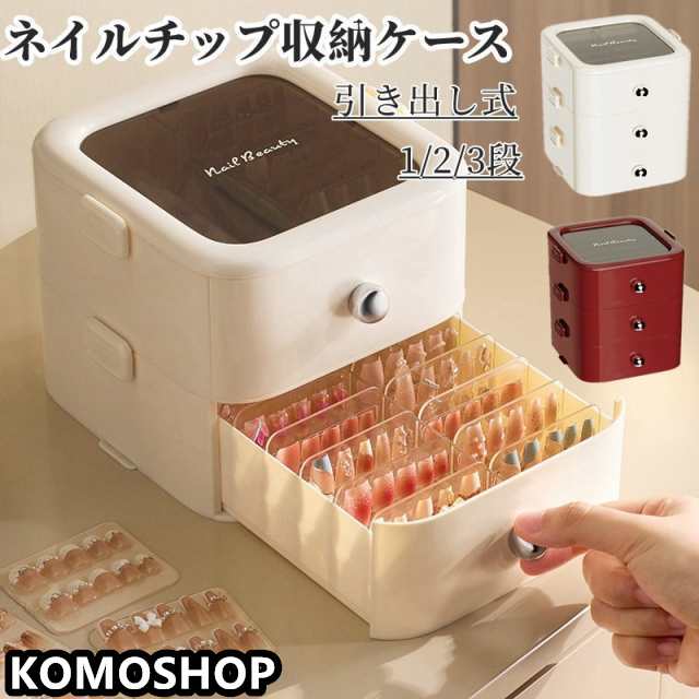 ネイルチップ 収納ケース つけ爪チップ 引き出し式 1段 2段 3段 収納ボックス ネイルアートデコレーション ネイルアート ディスプレイ ボックス コンパートメント付き ネイルチップ コンテナ収納ケース