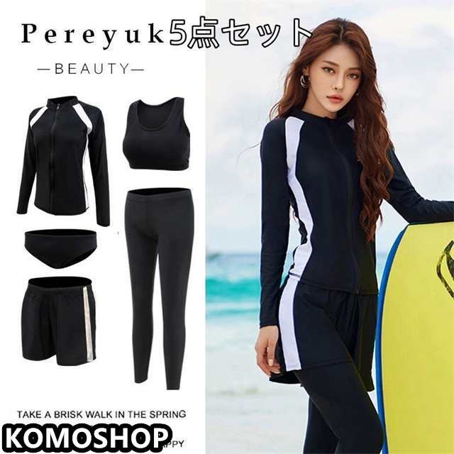【女性用・5点セット】ラッシュガード+ ショートパンツ+タンクトップ+ショーツ+レギンス