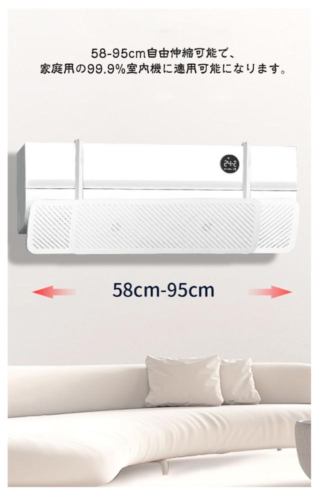 エアコン風よけカバー 風除け 伸縮自在 58-91cm 冷房対策 エアコン風向き調整 角度調整可 長さ調整可 結露防止 風の直撃防止 かぜよけ 直撃風防止 エアコンルーバー オールシーズン 暖房 節電 取り付け簡単 軽量 夏冬兼用 リビング