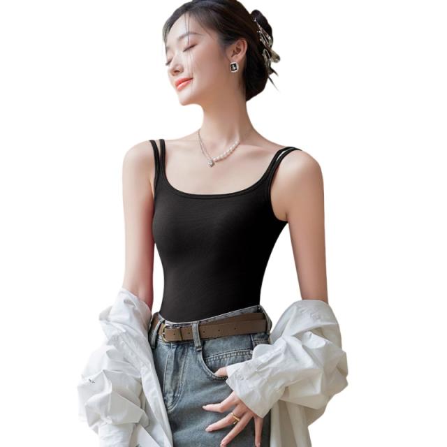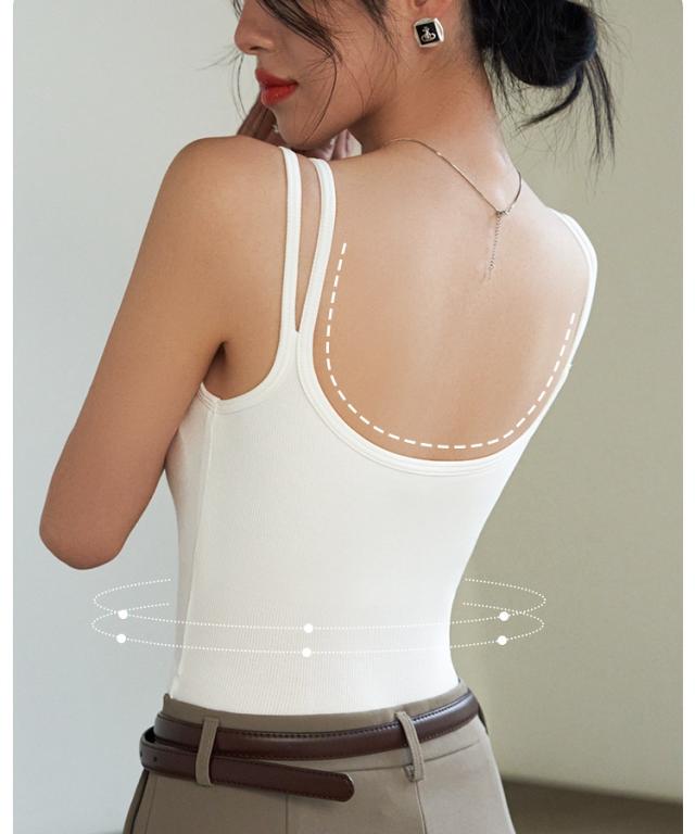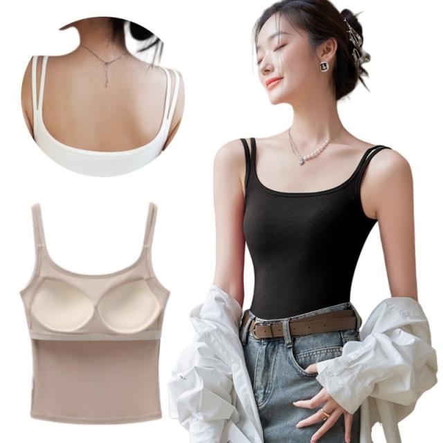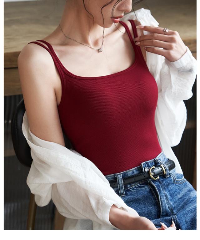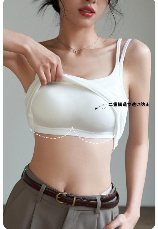 レディース カップ付き キャミソール ダブルストラップ インナー ノンワイヤー ブラトップ タンクトップ 着痩せ シンプル 夏 韓国風 トップス ブラトップ 一体型 部屋着 ルームウェア ヨガ ジム 吸汗速乾 美シルエット ストレッチ インナー バック Uカット