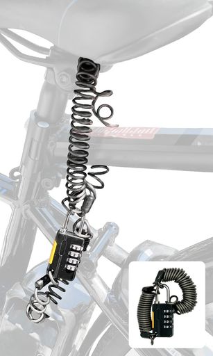 ?【1つで2役】これひとつで?「バッテリー」と?「サドル」の?両方を同時にロックできます!! ?【ワイヤーが長い】長さの異なる2本のワイヤーが付属し、太さは?約2.6mm。最大伸長時の長さはサドルロック用の上部のワイヤーは?150cmで未使用時には?取り外し可能、バッテリーロック用の下部のワイヤーは?100cmとなっております。サドルロック用の上部のワイヤーは最長150cmと長めにすることでサドルを高くしたままでも取り付け可能です!!背の高い人でも不便さを感じることはありません??