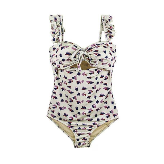 ・小花柄のワンピース風デザイン水着