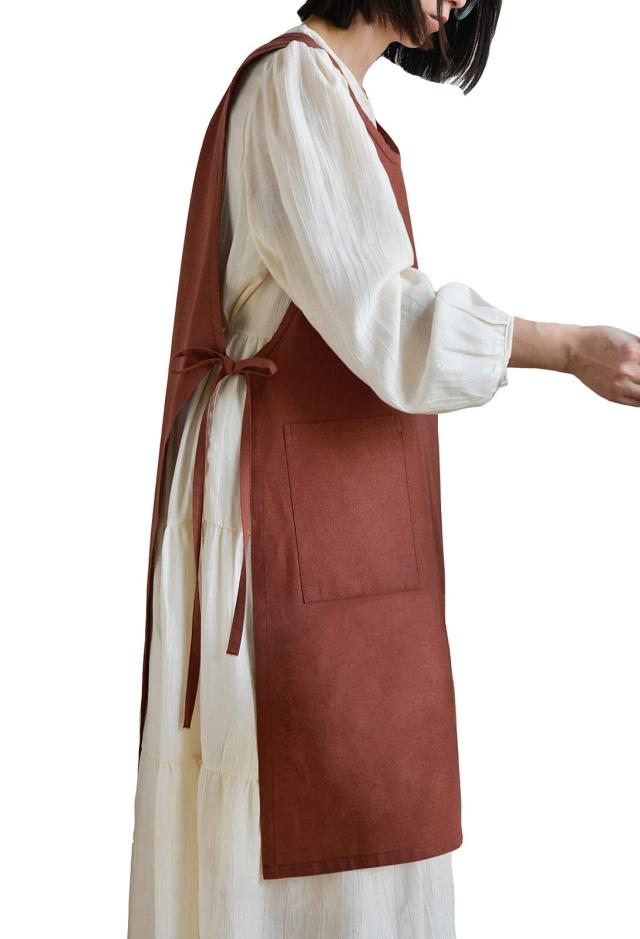 ◆商品名:TOWYYO エプロン レディース かわいい 撥水 ベストエプロン ロング丈 花柄 無地 北欧風 ポケット付き ワンピース風 ゆったり シンプル