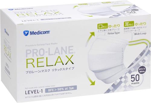 [メディコムジャパン] 不織布マスク プロレーンマスク リラックス ホワイト 50枚入 使い捨て 大容量 耳が痛くなりにくい 息がしやすい 不織布 大きいサイズ 大きめ ケース 携帯用 PLEJMA2714