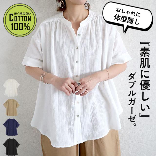 春新作 シャツ ブラウス レディース ダブルガーゼ 羽織り 綿100% カットソー トップス [郵1.5]^t1089^