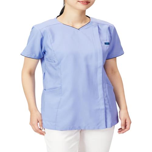 [フォーク] スクラブ・白衣 7022SC レディース サックス×ダークネイビー M (日本サイズM相当)