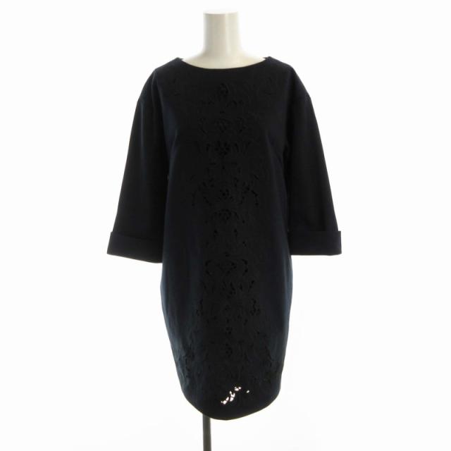 【中古】グレースコンチネンタル カットワークジャージワンピース ひざ丈 刺繍 五分袖 36 紺 ネイビー 15332102
