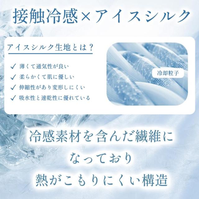 冷感素材(アイスシルク)を含んだ繊維になっており熱がこもりにくい構造