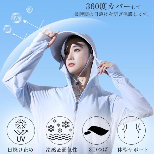 uvカットパーカー ラッシュガード レディース 水着 接触冷感 涼しい UVカット 日焼け防止 遮蔽率99.9%達成 UPF50+ 360度紫外線対策 夏 薄手 指穴 フード付き