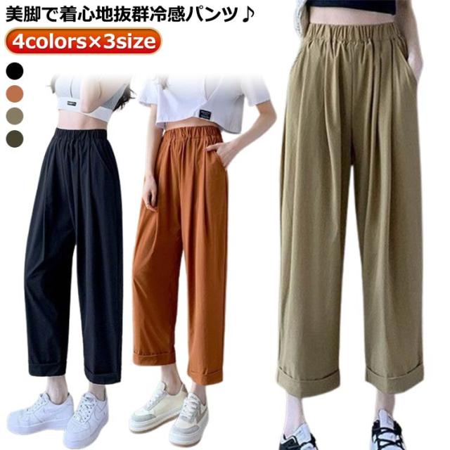 アイス シルク パンツ レディース 速乾 冷感パンツ アイスシルクパンツ レディース 通気性 涼しい 薄手 ウエストゴム ワイドパンツ ストレートパンツ 9分丈 ズボン パンツ レディース サルエルパンツ ひんやり ロング カジュアル 夏 春 秋