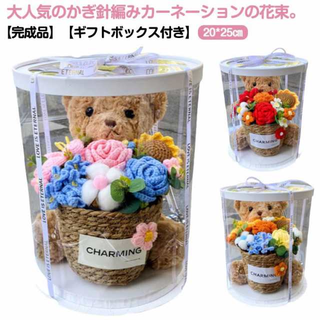 | 大人気のかぎ針編みカーネーションの花束。【完成品】【ギフトボックス付き】 カギ編みで仕上げた永遠に咲く花 枯れない手編みフラワーです。かわいく本物そっくりです。 ギフトとして人気急上昇中の造花! ふわふわの愛らしいベアがどんな素敵なシーンも可愛く華やかに彩ります 枯れる心配がないので、花の美しさを永遠に保つことができます。 水やり、換気、日光などを気にする必要がないので、どこにでも飾ることができます。 メッセージカードも付き、心からの感謝、愛を大切な方へ送りましょう。 母の日、バレンタイン、入学式、卒業式、退職祝い、結婚式、誕生日、記念日など、ちょっとしたプレゼントにぴったりです。 | |
