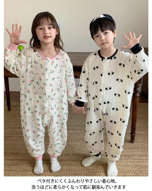 キッズ パジャマ ロンパース 130cm ダブルガーゼ つなぎ カバーオール 長袖 スリーパー 秋 冬 春 綿コットン 寝間着 100cm 80cm 女の子 男の子 ルームウェア 部屋着 ナイトウェア オールインワン 秋服 冬服 オーバーオール 送料無料
