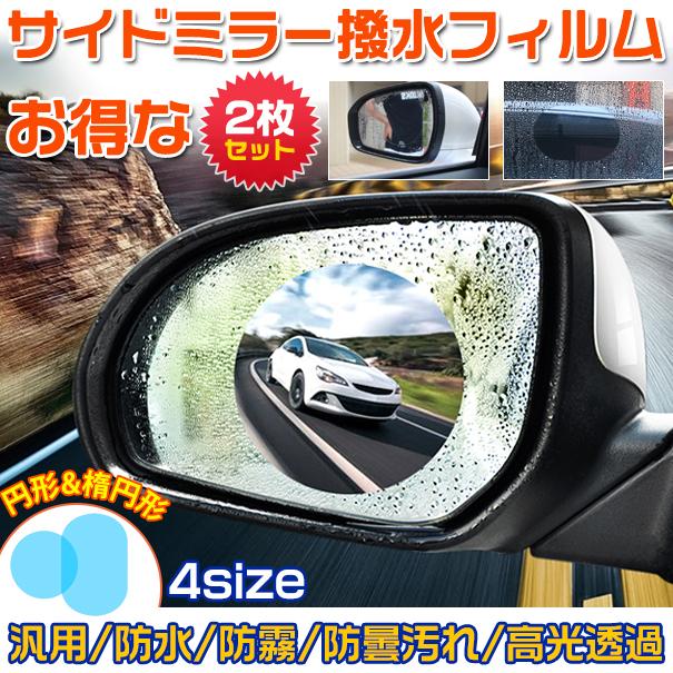 撥水 フィルム 2枚セット 4サイズ サイドミラー ドアミラー 車用 防水 汎用 円形 カー用品 雨除け 防霧 保護 防曇汚れ 高光透過率 補助 安全運転 代引不可