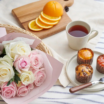 お部屋を彩る新鮮なバラのミニアレンジメントと、フランスの老舗紅茶ブランド「ニナス マリー・アントワネット」の世界観で、時を超えたロイヤル・ティータイムをお届けします。