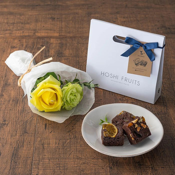 商品名:ホシファーム 薔薇のミニブーケ パッション2本&ホシフルーツ贅沢ブラウニー3個入