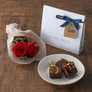商品名:ホシファーム 薔薇のミニブーケ ルージュ2本&ホシフルーツ贅沢ブラウニー3個入