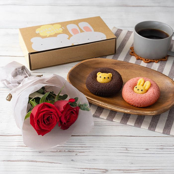 ホシファーム 薔薇のミニブーケ ルージュ2本アニマルドーナツ