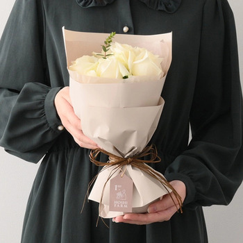 ホシファームの新鮮なバラを、届いた姿でそのまま飾れる自立するブーケに仕立てました。