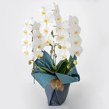 ホシファーム 大輪胡蝶蘭3本立て33輪 白系 緑リボン