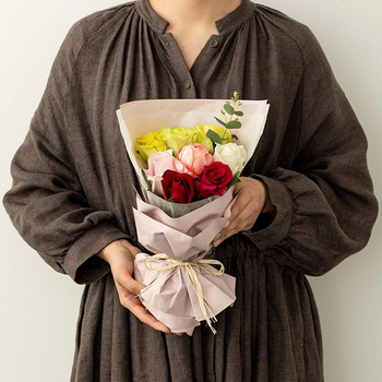 摘みたてのバラの中から、ギフトに最適なバラを選定し組み合わせた、華やかなミックスカラーのおまかせバラのスタンディングブーケです。