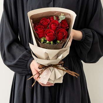 商品内容:おまかせバラ(ミックスカラー)×8本、カード熨斗(文字数により承りできない場合がございます。)、スタンディングブーケのしおり付き