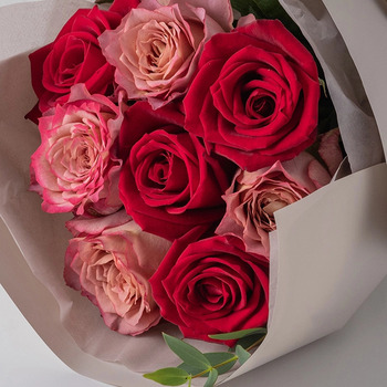 農園直送 花持ちのよい摘みたてバラのフリルブーケ ニュアンスレッド。