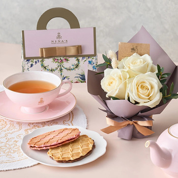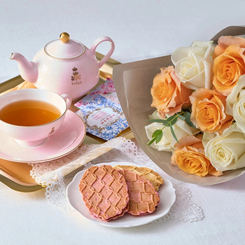 フリル12本ホワイトオレンジミルフイユとウェッジウッドティー
