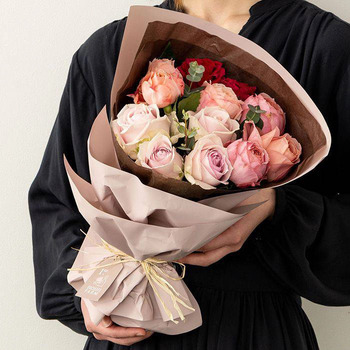 栽培しているピンク系の品種の中より、その時一番のおすすめのバラを摘み取りキュートなピンク系のブーケに仕立てます。