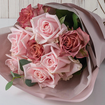 フレッシュなピンク系のバラのブーケ。