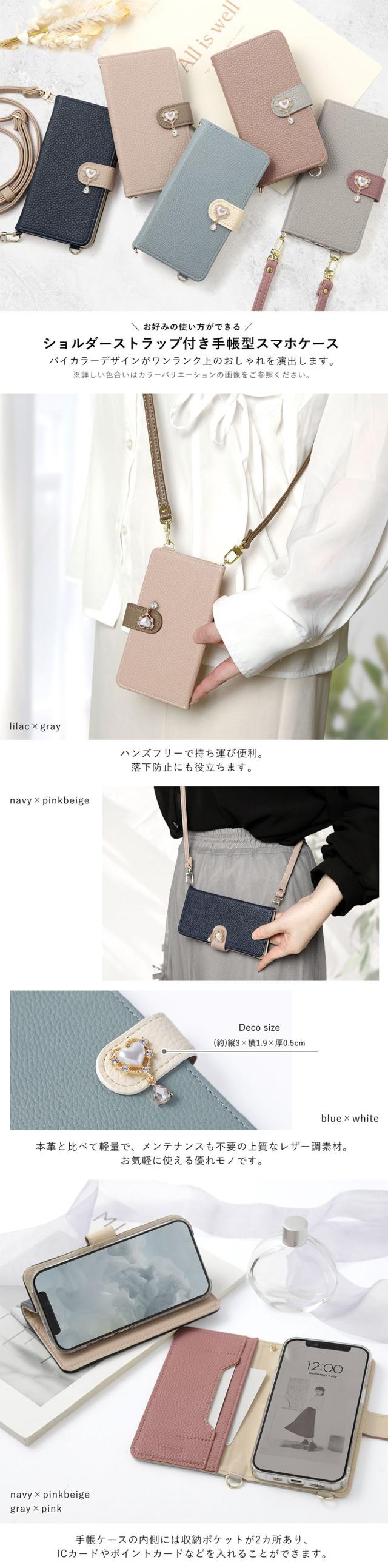 ショルダータイプの手帳型ケース全5色×スウィングパールハート