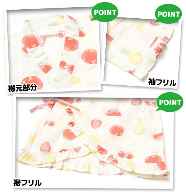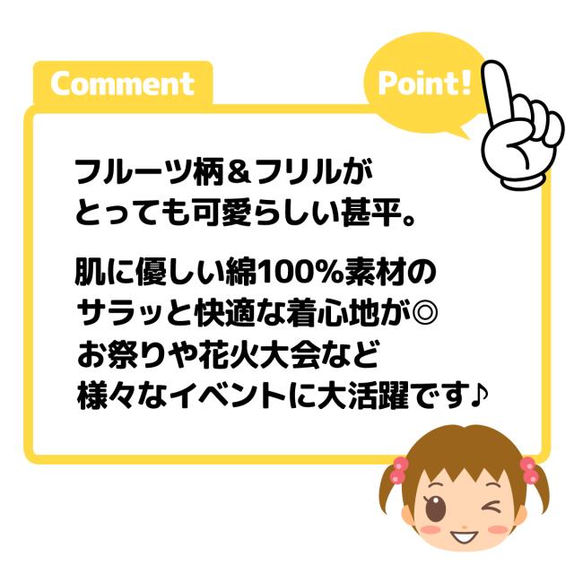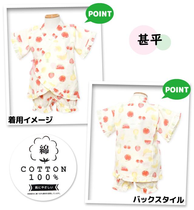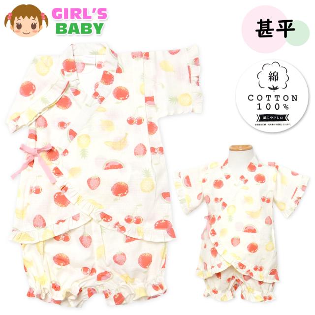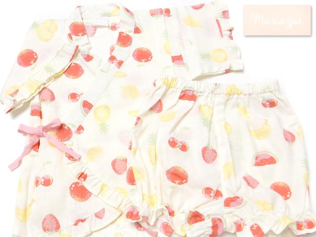 【送料無料】女児 ベビー 綿100% 甚平 上下組セット フルーツ柄 フリル ベビー服 女の子 90cm 95cm iw-1342a-cr【メール便対応】