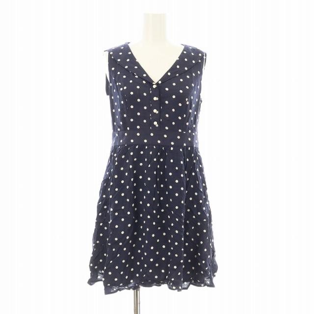 【中古】ビーラディエンス NY-0416 ワンピース フレア ミニ ノースリーブ セーラーカラー ドット柄 F