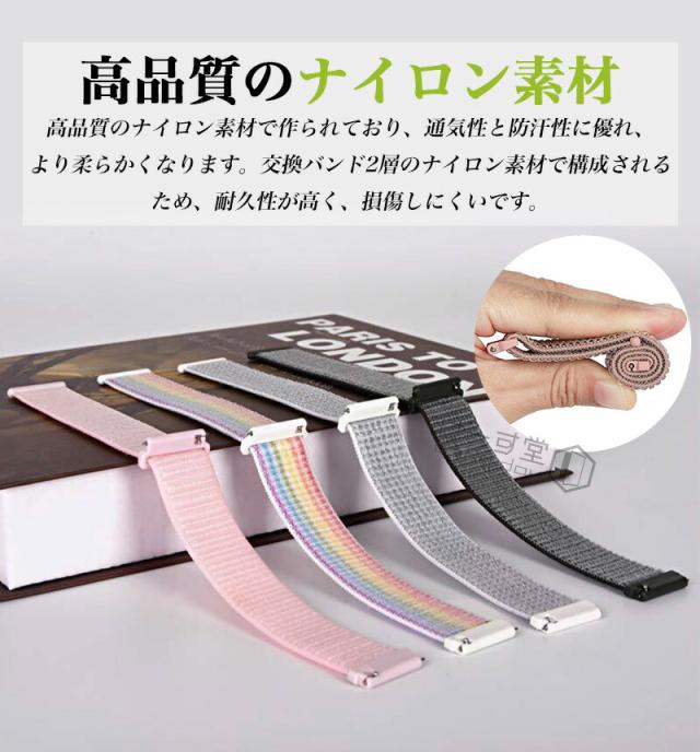 【高品質ナイロン素材】高品質のナイロン素材で作られており、通気性と防汗性に優れ、より柔らかくなります。交換バンド2層のナイロン素材で構成されるため、耐久性が高く、損傷しにくいです。