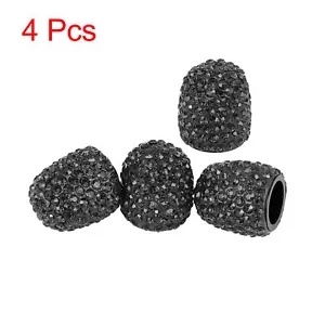 4 個ユニバーサルブリンブリンフェイククリスタルタイヤバルブステムキャップタイヤエアキャップカバーブラック 4PCS Universal Bling Faux Crystal Tire Valve Stem Caps Tyre Air Cap Cover Black