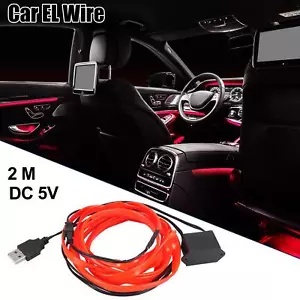 DC 5V 2 メートル/6 フィート USB EL ワイヤーストリングストリップレッドコールドライトセット車の装飾用 DC 5V 2 Meter/6ft USB EL Wire String Strip Red Cold Light Set for Car Decoration