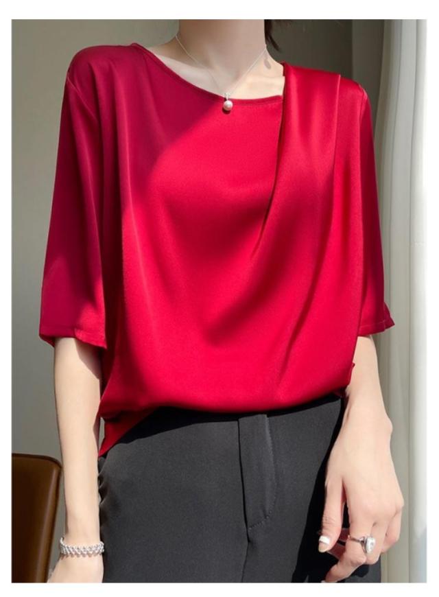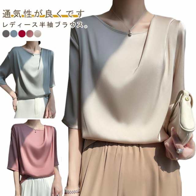 春 フォーマル おしゃれ Uネック 半袖 結婚式 クルーネック チュニック レディース シンプル シャツ ブラウス パーティー トップス 半袖 tシャツ オフィス プルオーバー カジュアル 夏 通勤 カットソー きれいめ 涼しい 母 ママ 薄手